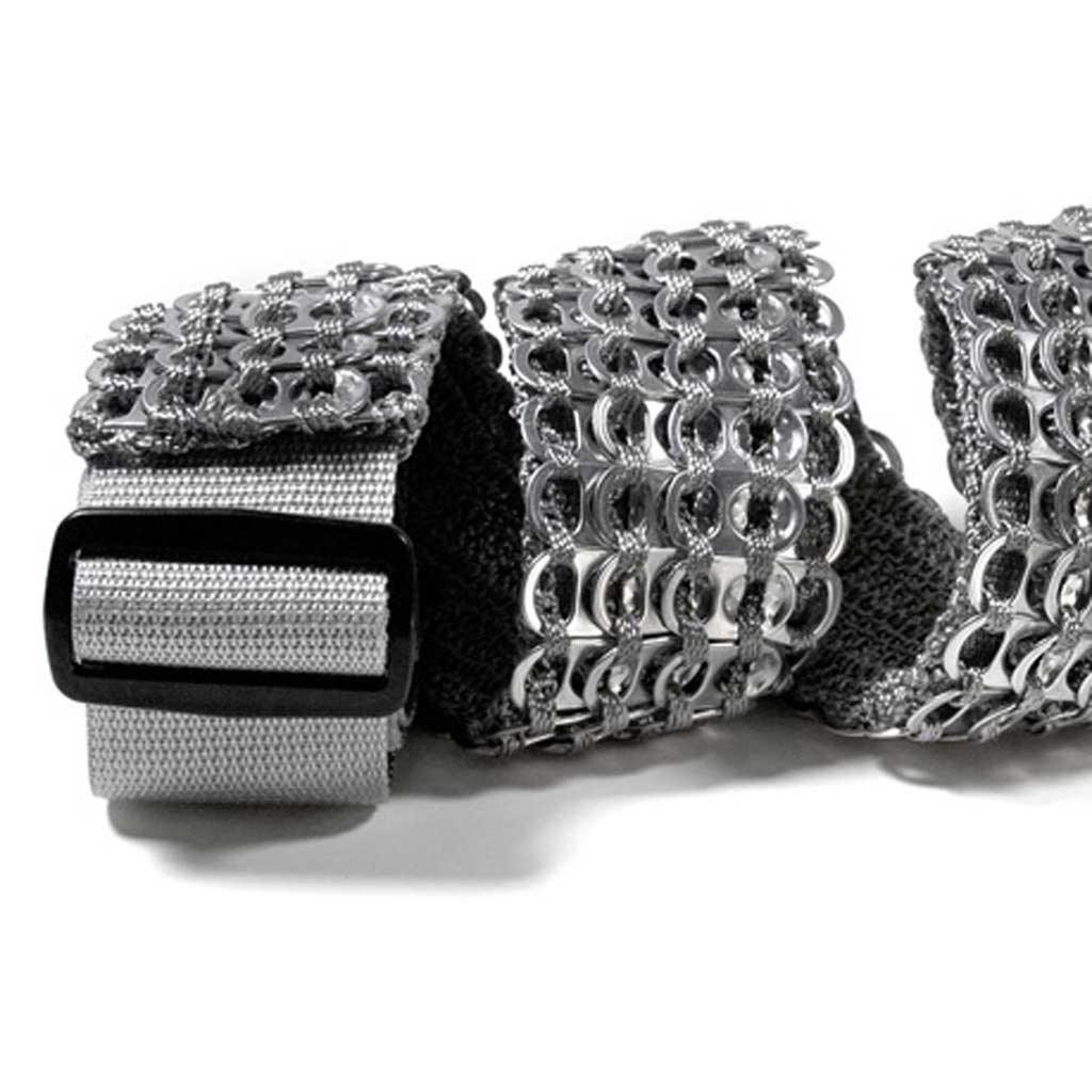 Material(s): Up-cycled aluminum, ballistic nylon, polypropylene webbing and leather ends